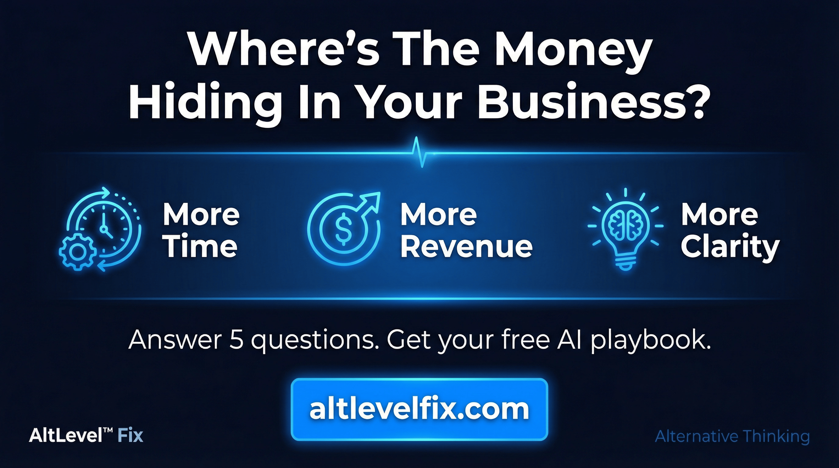 THE FIX Playbook. 5 questions. A diagnostic that shows you where the money is stuck, where it's leaking, and the one move you're not making. Built on 50 years of doing this with businesses between $500K and $10M.